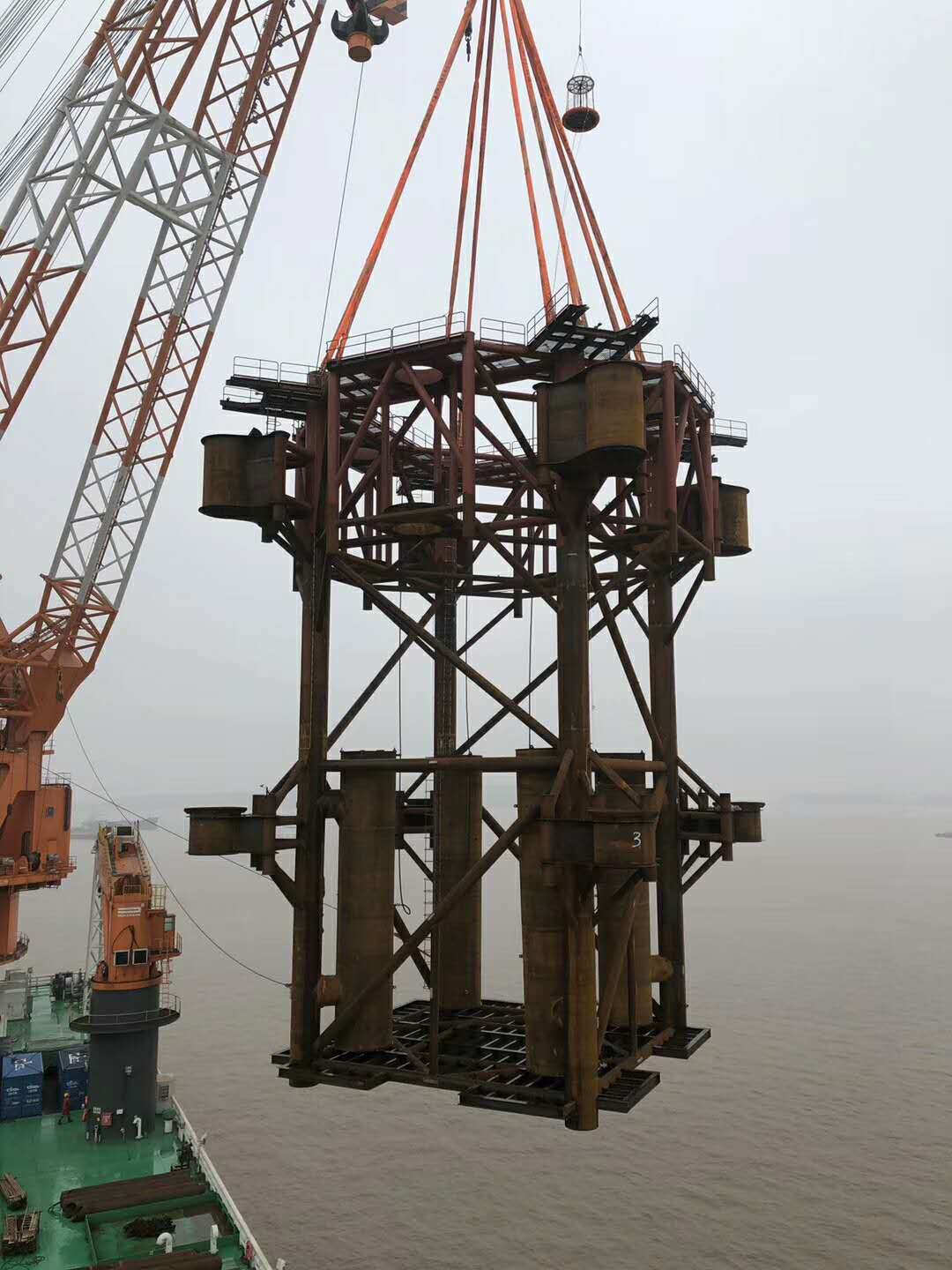 據了解,鋼結構由揚帆集團通用船配公司制作,在大神洲船廠組裝交付。第二套保持架正在設計優化中,預計于2019年4月中旬完工交貨。(圖為保持架鋼結構正在裝船吊離碼頭)