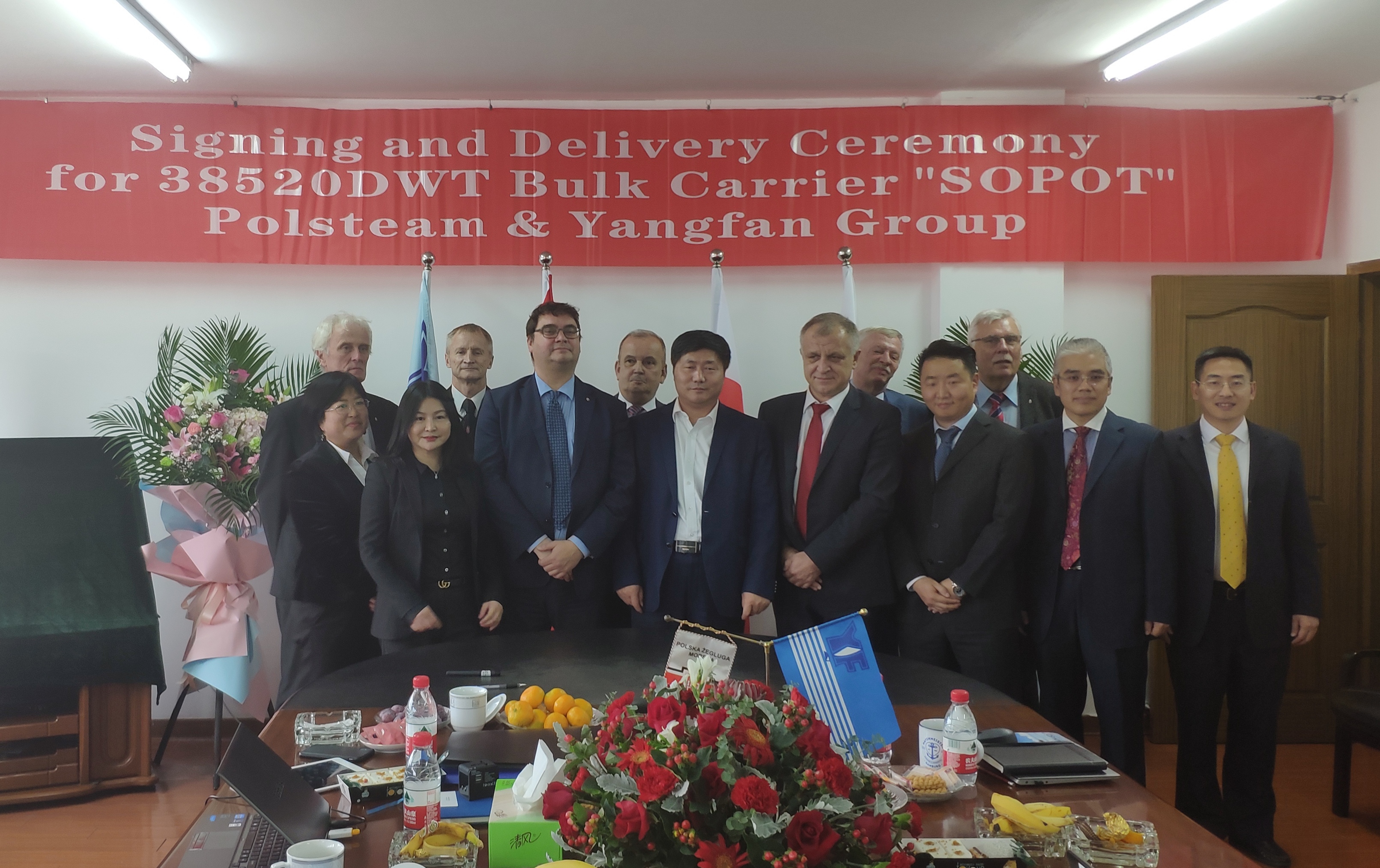 2019年10月22日,揚帆集團下屬浙江東海岸船業公司一日實現兩大生產節點。上午,一艘7800車系列汽車滾裝船入塢建造;下午,一艘38520噸系列散貨船正式簽字交付。