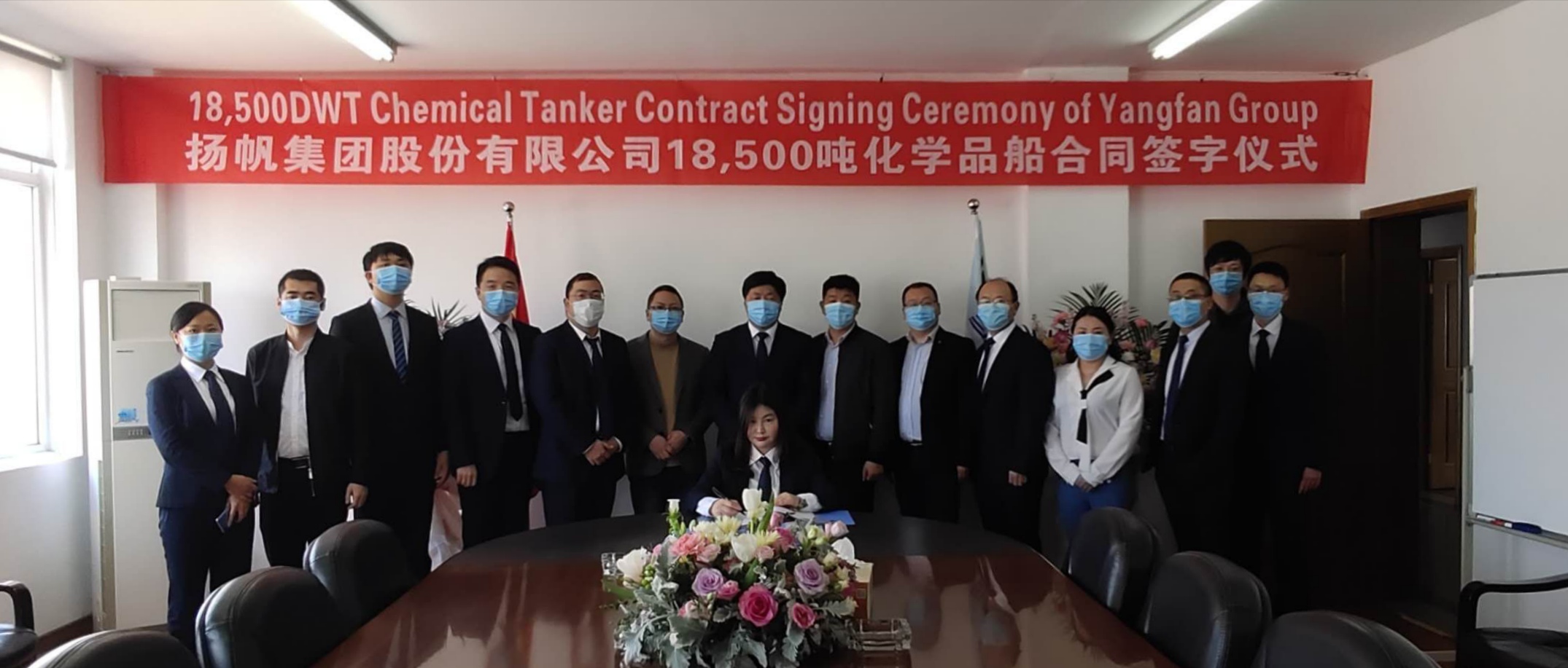 2020年4月9日,揚帆集團(tuán)與一家國外船東簽署一艘18500DWT化學(xué)品船建造合同。該船型長164.34米、寬23米、設(shè)計吃水9.55米。