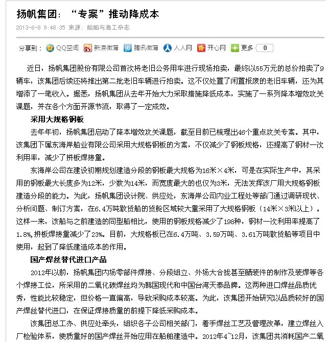 中國船舶在線:揚帆集團與重鋼簽訂2013年合作協